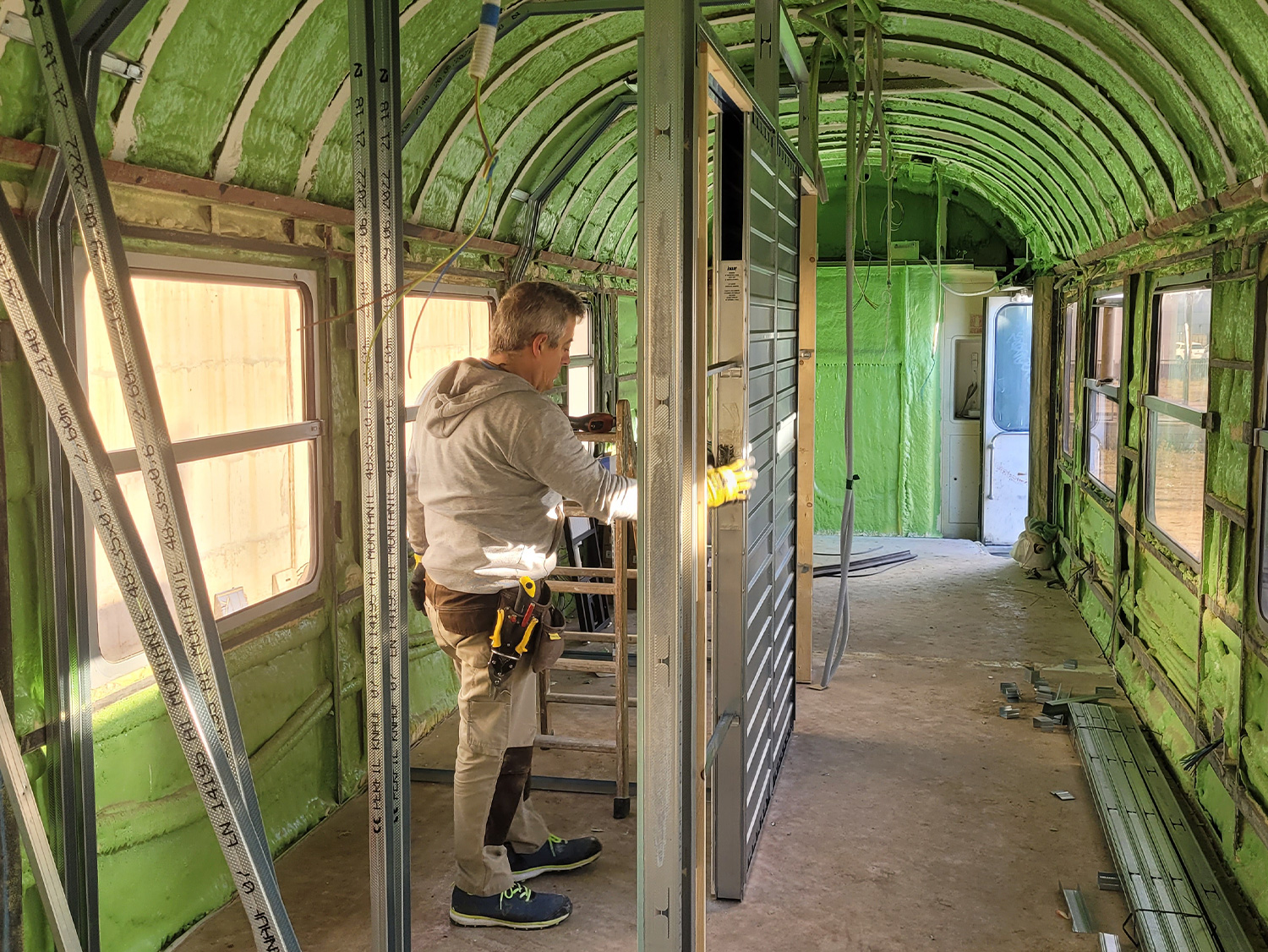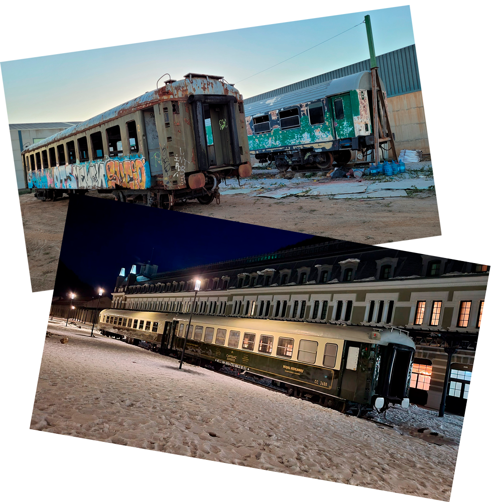 Tomamos vagones antiguos y los restauramos al detalle, respetando su historia, para convertirlos en espacios útiles y prácticos donde la nostalgia del tren cobra vida de nuevas maneras.