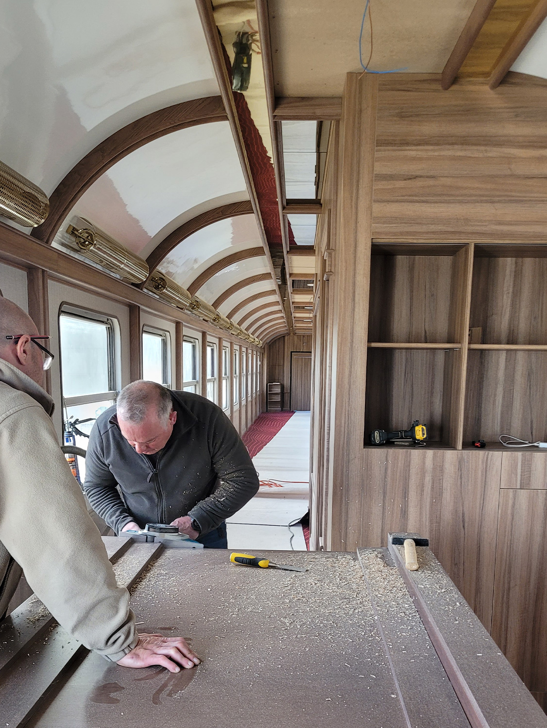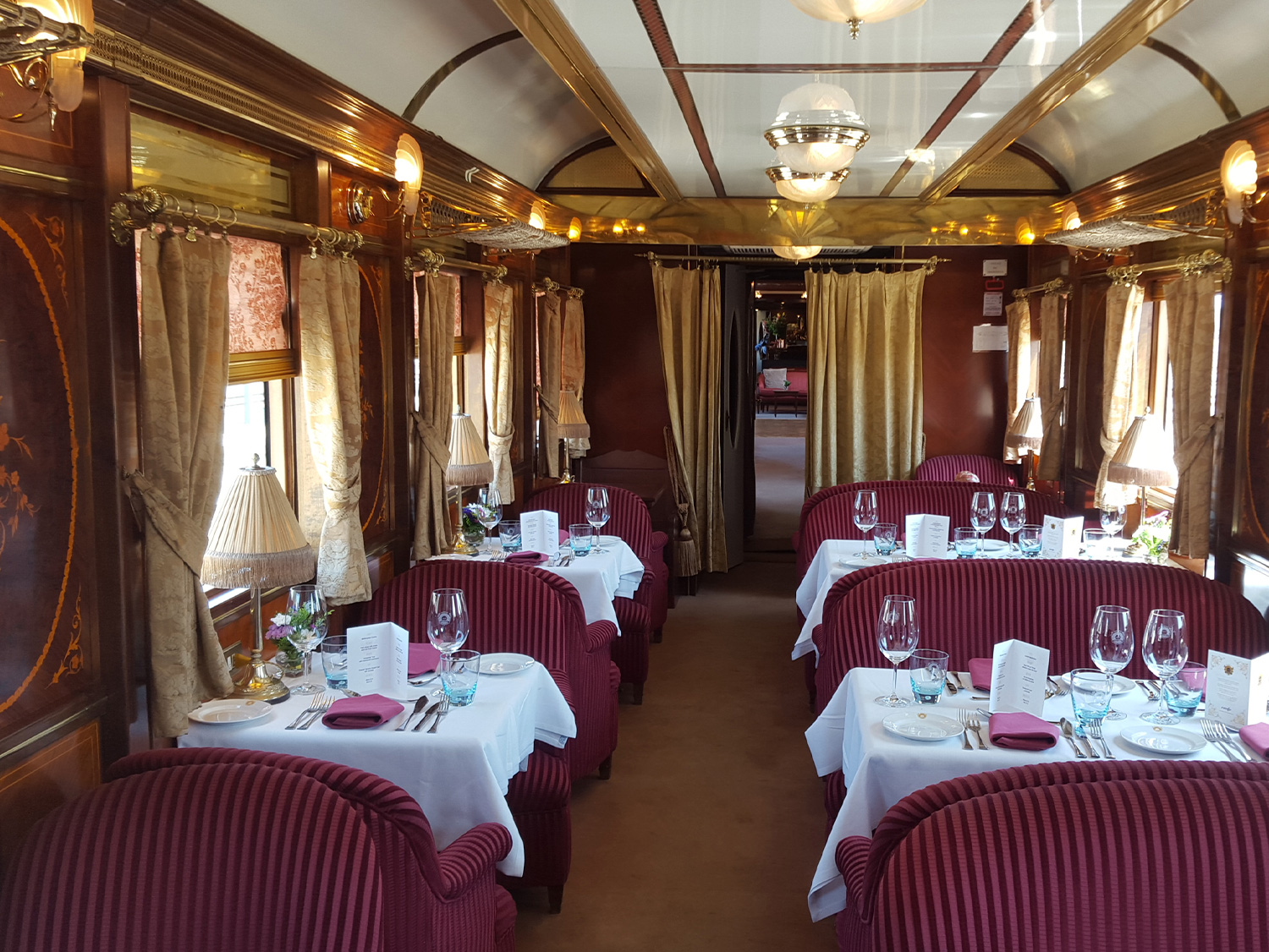 La restauración de un Wagon-Lits de época con sus salones sociales originales es un trabajo meticuloso que busca devolverle su esplendor tal como era en su momento. Estos vagones, conocidos por su lujo y confort, se han rehabilitado respetando cada detalle, desde los elegantes revestimientos de madera hasta los sofás tapizados, lámparas y decoraciones originales.